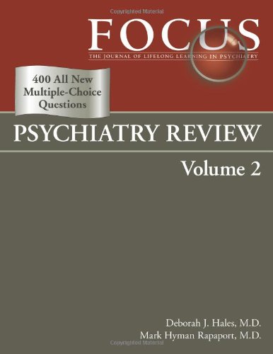 FOCUS Psychiatry Review, Volume 2, contains 400 new board-type multiple-choice questions derived from material in the annual FOCUS Self-Assessment Examinations that can help psychiatrists prepare for examinations and identify areas for further study. These new questions, developed by the FOCUS Self-Assessment Editorial board, are consistent in form and process with the questions used by high-stakes examinations. They cover important clinical areas of psychiatric practice and closely follow the American Board of Psychiatry and Neurology (ABPN) outline of topics for the recertification examination in psychiatry. FOCUS Psychiatry Review is designed to test current knowledge and its clinical application. The workbook is flexible in format, allowing readers to use the educational approach that works best for them. Readers can review resource materials prior to answering questions, or they can use the workbook to review the references listed in the critiques after scoring test sections. The workbook will be useful for anyone committed to lifelong learning in the field practicing psychiatrists, psychiatric residents, and psychiatrists preparing for examinations. APA is accredited by ACCME to provide continuing medical education for physicians. APA designates this educational activity for a maximum of 50 AMA PRA Category 1 CreditsTM. Physicians should claim credit commensurate with the extent of their participation in the activity. Program start date: February 2011 Program end date: February 2014From reader reviews: